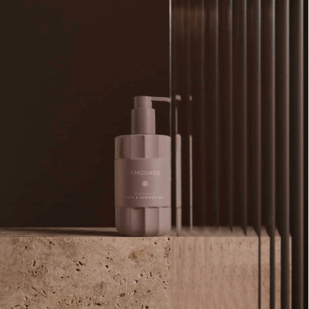 奢潤身體系列的瓶身設計靈感源自 AMOUAGE 經典的盾形徽章。沐浴膠與潤膚乳採用細緻的波紋凹槽瓶身,象徵品牌深厚的歷史底蘊,同時展現面向未來、持續創新的現代精神。整體以霧面羊絨色調呈現,呼應阿曼大地般溫潤沉靜的自然色彩;瓶身字樣則以蜜桃黃點綴,與玫言蜜語香水瓶身相互呼應,形成一致且優雅的視覺語彙。