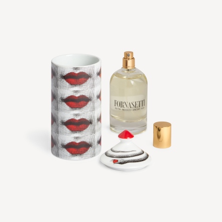 FORNASETTI 繆思女神 Lina Cavalieri 臉上的每個特徵都散發著誘惑的氣息,「緋紅唇印」家居香氛系列的重點是她那迷人的雙唇,透過亮紅色的加入,打造了大紅唇的形象,充滿活力和激情的女性特徵,使其更加有魅力。該系列在瓶身上採用普普藝術風格的圖案,每個蠟燭的表面都重複出現著標誌性的大紅唇。此外,蛇這個元素的添加更凸顯了該系列產品的魅惑和迷人品質。