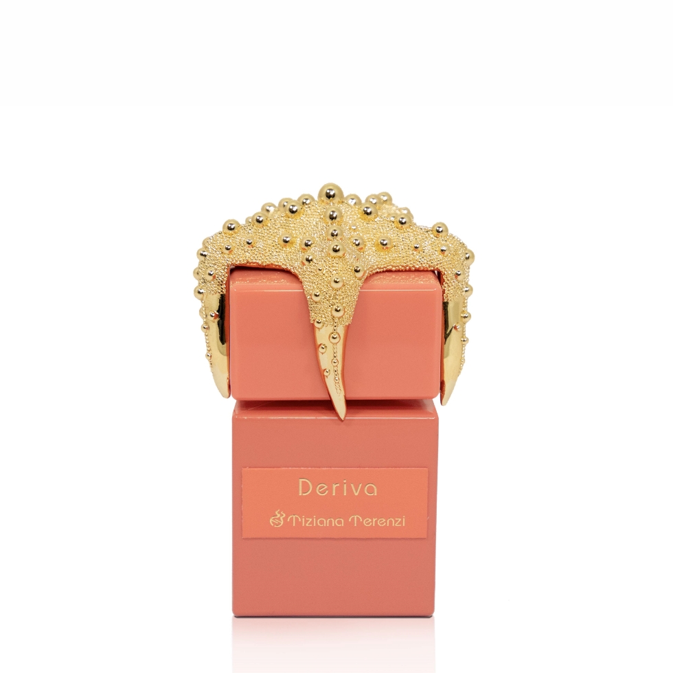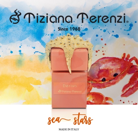 想像著搭乘Terenzi 心愛的Telea 號到遠離陸地的深海之中,周圍的一切僅有天空與海洋,風突然完全停止了,周圍的一切變得超現實般的寧靜,船隻不再被操控、不再聽見帆索與風搏鬥的吱嘎聲與破浪而行的拍打聲,一切都變得寂靜,彷彿進入另一個次元,沒有任何力量與意志能打破這片寧靜。有時,我們必須能夠向生命屈服,才能充分感受其脈動,正如在海上漂流進入未知海域時所做的,我們緩慢的漂流著,讓魂靈與生命相互滲透,合而為一。這種對無為而治的智慧被封存在名為Deriva 的香水中,象徵著在平靜的海面的暗潮湧動中、在最不可言說的神祕與激情中化為漩渦與泡沫。